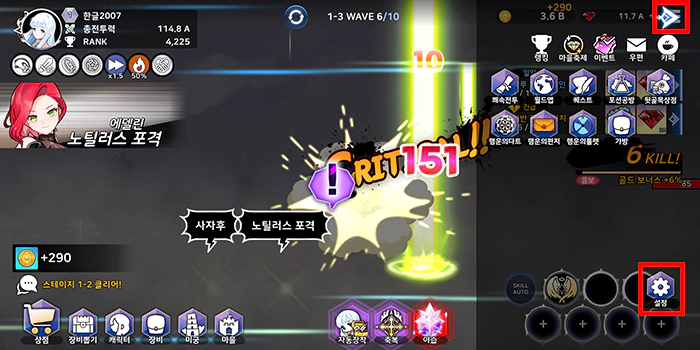 소녀기사 키우기에 접속하고 닉네임 입력 후 초보자나 고수를 선택할 수 있는데 저는 고수로 선택했지만 초보로 선택하면 짧은 튜토리얼이 있는 것일까요? 아무튼 게임에 접속하시면 바로 쿠폰을 등록할 수 있습니다. 화면 오른쪽 상단 메뉴 버튼을 터치하면 아래쪽으로 반투명 배경 메뉴 화면이 열리는데 아래쪽에 설정 버튼이 있습니다. 설정 버튼을 터치하세요.