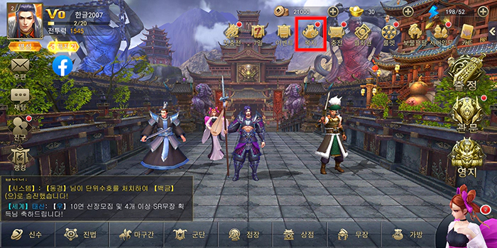 MZ삼국지는 튜토리얼이 있습니다. 처음에 접속해서 튜토리얼을 완료하신 분들은 바로 쿠폰을 등록할 수 있는데요. 화면 상단에 보이는 버튼 중에서 복지 버튼을 터치합니다.