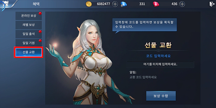 혜택 화면이 열렸습니다. 화면 왼쪽에 보이는 버튼 중에서 선물 교환을 터치하세요. 그리고 화면 오른쪽에 탑 저지먼트 쿠폰 코드를 입력해서 보상을 받으시면 됩니다. 현재 구글 플레이 게임 설명에 적혀있는 쿠폰 코드는 TOP111, TOP222, TOP333, TOP444, TOP555입니다. 그리고 제가 원스토어에서 받은 사전예약 쿠폰도 남겨드릴게요. 139931edbeae 입니다. 구글 쿠폰은 모두 입력할 수 있지만 원스토어 쿠폰은 딱 한 분 입력할 수 있는 코드니까 빠르게 입력해 보세요.